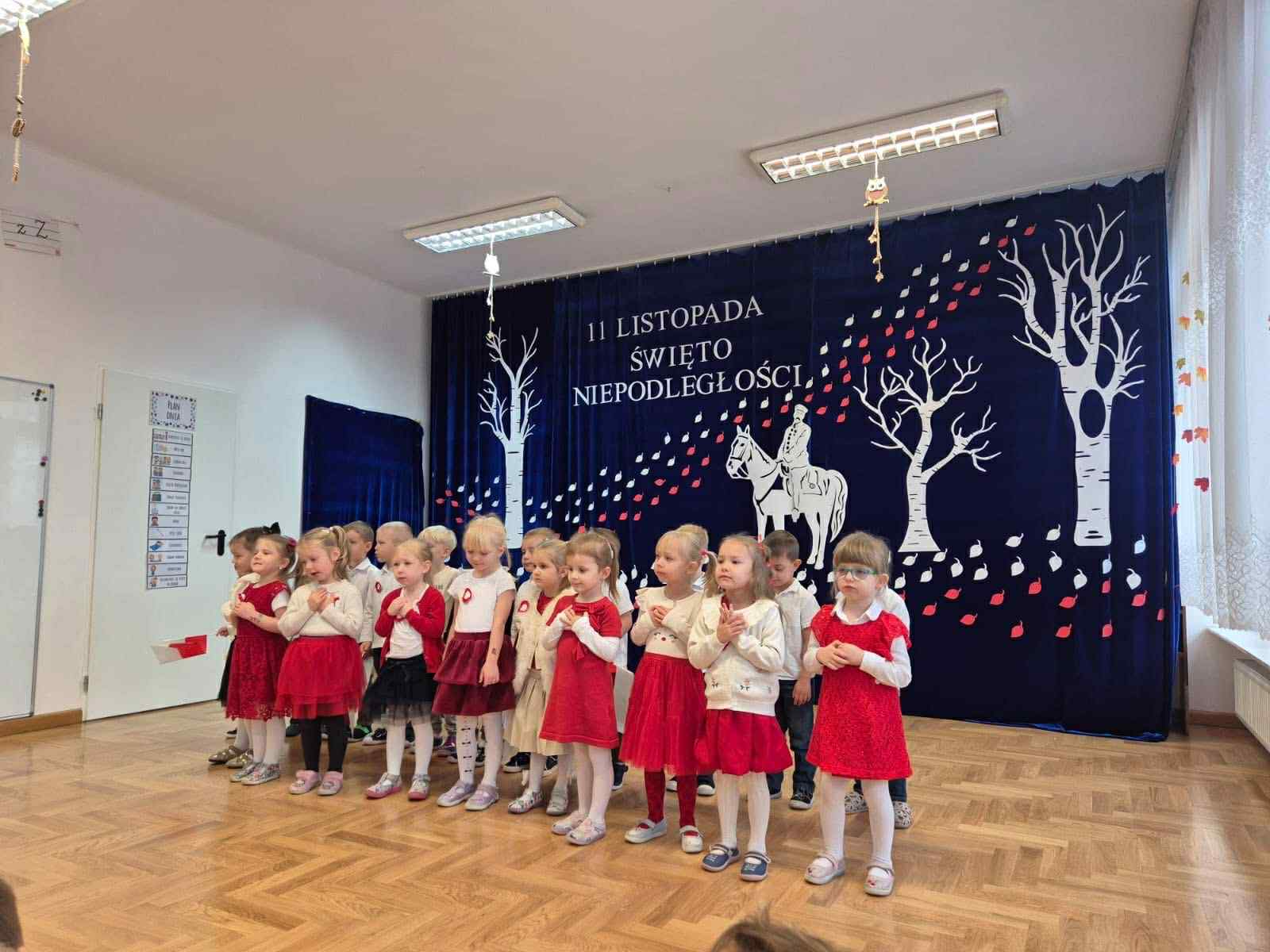 12 listopada świętowaliśmy Narodowe Święto Niepodległości. Nasze przedszkole włączyło się w ogólnopolską akcję „Szkoła do hymnu 2025”. Punktualnie o godzinie 11:11 wszyscy zebrani odśpiewali „Mazurek Dąbrowskiego”, oddając hołd tym, którzy walczyli o wolność naszej Ojczyzny.